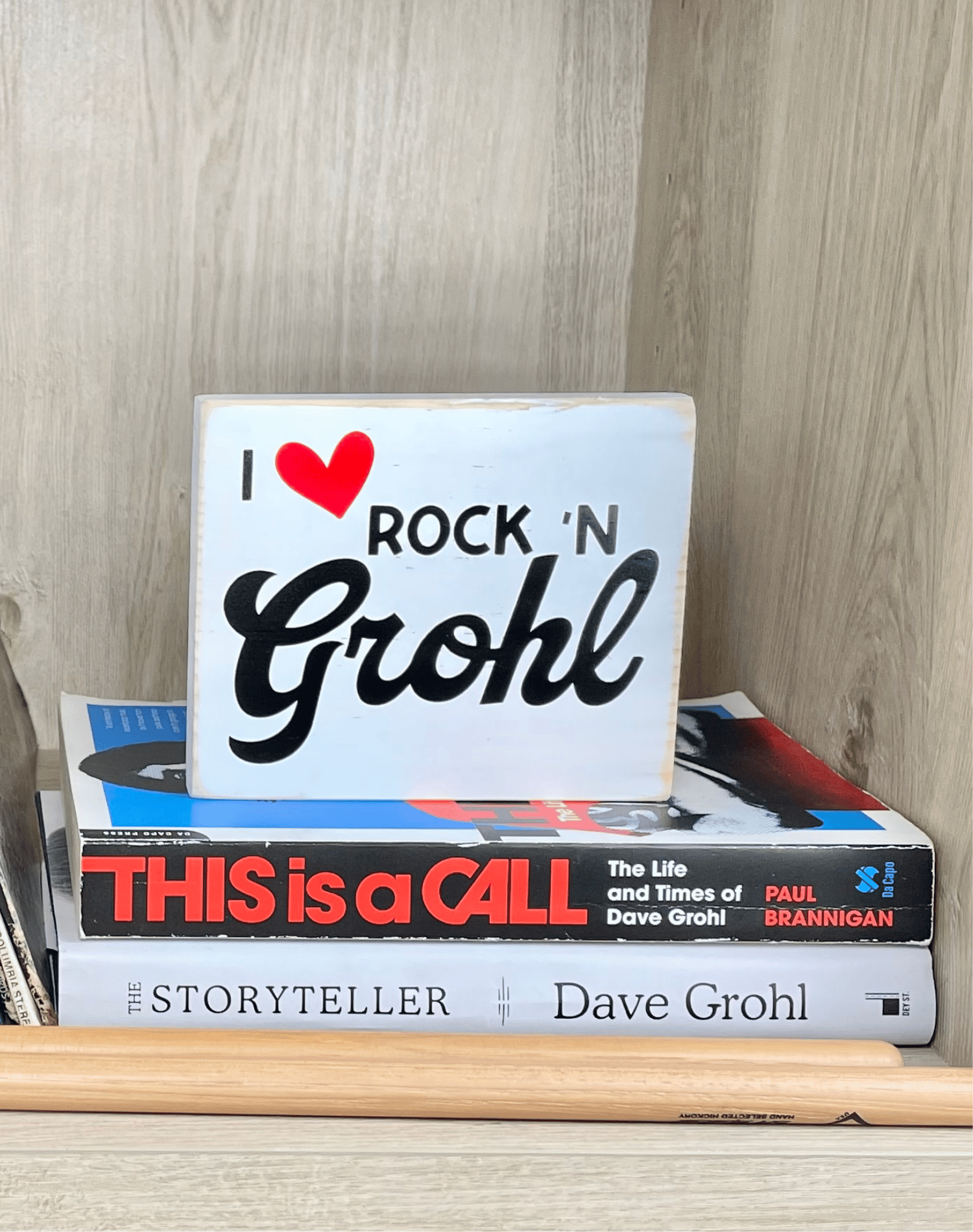 Rock out in style with the "I Love Rock 'n Grohl" sign! Show your love for Dave Grohl and rock 'n roll with this fun small sign. A must-have for any music lover, it's the perfect addition to your home decor.